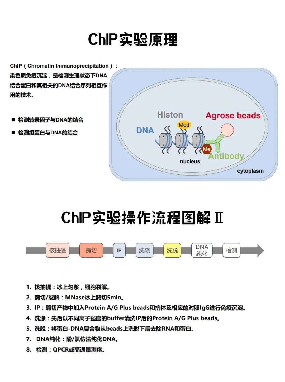 需要觀看視頻版本可點(diǎn)擊《IP實(shí)驗(yàn)之CHIP-染色質(zhì)免疫共沉淀,師姐說(shuō):原理、步驟、結(jié)果都一次性說(shuō)清楚了!》
