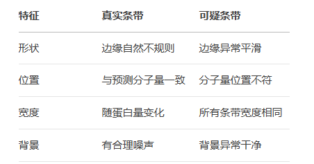 特別注意條帶是否出現(xiàn)"剪切粘貼"痕跡或重復(fù)使用相同條帶。