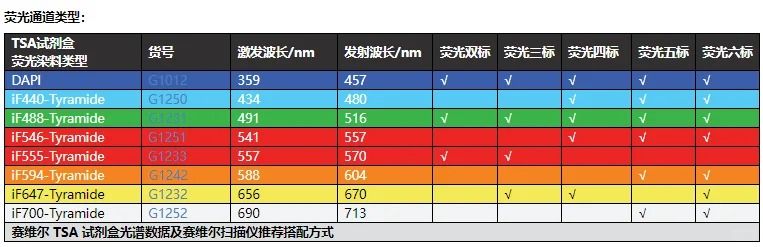 TSA法是一種信號放大技術(shù),其主要原理是利用酪胺Tyramide的過氧化物酶反應(yīng)(即熒光標(biāo)記的酪胺鹽在HRP催化H202下形成共價(jià)鍵結(jié)合位點(diǎn)),產(chǎn)生大量的酶促反應(yīng),該產(chǎn)物能與周圍的蛋白殘基(包括色氨酸、組氨酸、酪氨酸殘基)結(jié)合,在抗原-抗體結(jié)合部位形成大量的熒光素沉積,實(shí)現(xiàn)信號放大。還可以通過多次重復(fù)免疫標(biāo)記,使用不同的熒光酪胺實(shí)現(xiàn)多重?zé)晒馊旧M瑫r(shí)也適用于相同來源一抗的雙重?zé)晒饷庖邩?biāo)記。