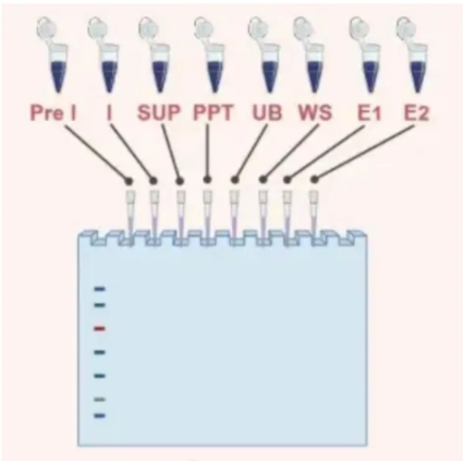 8.變性與電泳將目的蛋白樣本(E)、Pre-1、SUP、PPT.UB、WS 等分別加入 Loading Buffer,95°C變性 10 分鐘,使蛋白完全解鏈,隨后進(jìn)行 SDS-PAGE 電泳(200V,40分鐘),分離不同分子量的蛋白條帶