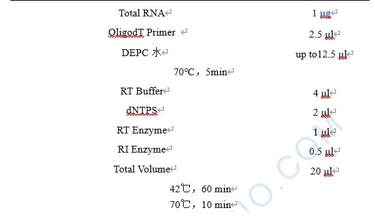 1. 按以下組份分別配制逆轉(zhuǎn)錄反應(yīng)液: