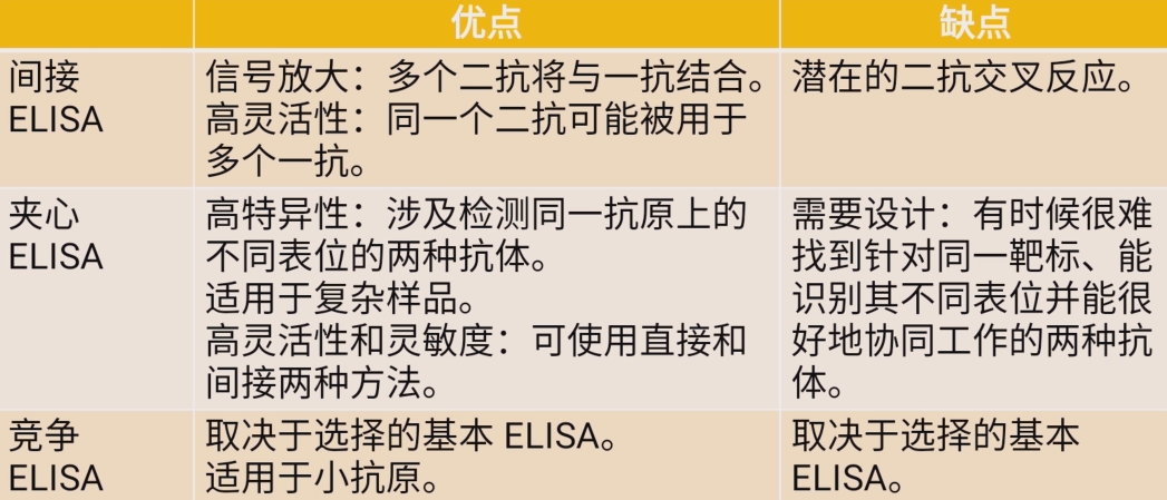 不同類型ELISA的優(yōu)缺點(diǎn);
