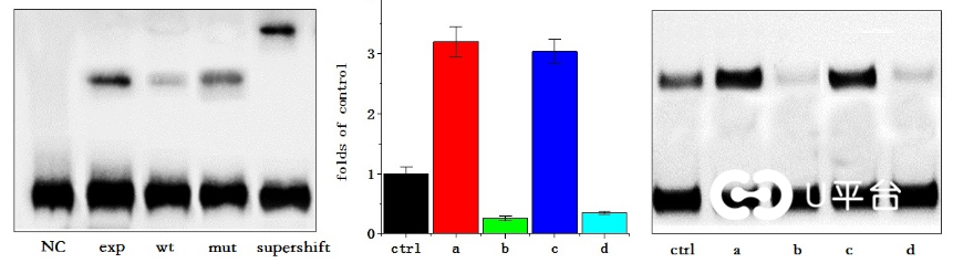 通過對EMSA凝膠遷移實驗電泳圖的分析,我們可以得到以下信息: