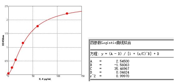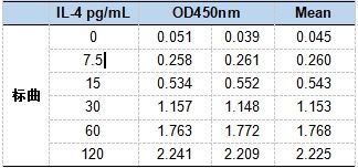 標(biāo)準(zhǔn)曲線結(jié)果顯示,本次IL-4檢測結(jié)果可信。
