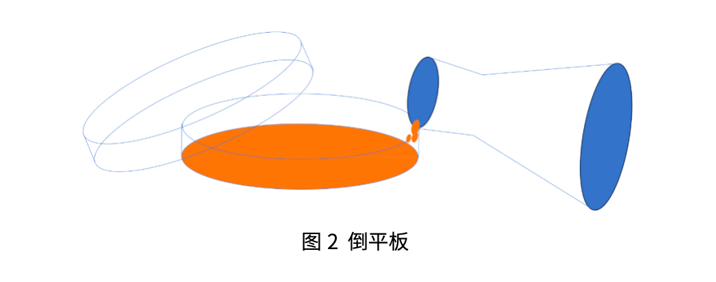 (5)所使用的物品基本上放置在酒精燈的周圍,例如倒平板時,灼燒瓶口后一手操作平板一手操作錐形瓶倒平板(圖2)。
