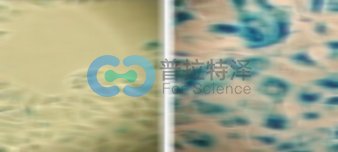 實(shí)驗(yàn)原理:絕大多數(shù)正常細(xì)胞被認(rèn)為僅有有限的分裂能力,在不能分裂后就進(jìn)入衰老(senescence)狀態(tài)。此時(shí)細(xì)胞仍然是存活的,但細(xì)胞的基因和蛋白的表達(dá)譜發(fā)生了很大改變。衰老的細(xì)胞不能在一些常規(guī)的刺激下再誘導(dǎo)細(xì)胞分裂,并且衰老細(xì)胞的細(xì)胞周期分布也比較特殊,不同于一些損傷誘導(dǎo)的細(xì)胞休眠,也不同于細(xì)胞生長接觸抑制的情況。衰老細(xì)胞通常體積變大,并表達(dá)在pH6.0時(shí)有高酶活性的β-半乳糖苷酶(β-galactosidase)。