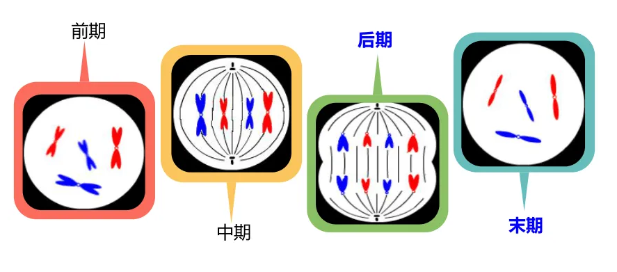 有絲分裂的細(xì)胞周期變化中最明顯變化是細(xì)胞核中染色體的變化。人們?yōu)榱搜芯糠奖悖逊至哑诜譃樗膫€時期:前期,中期,后期,末期。其實(shí),分裂期的各個時期的變化是連續(xù)的,并沒有嚴(yán)格的時期界限。