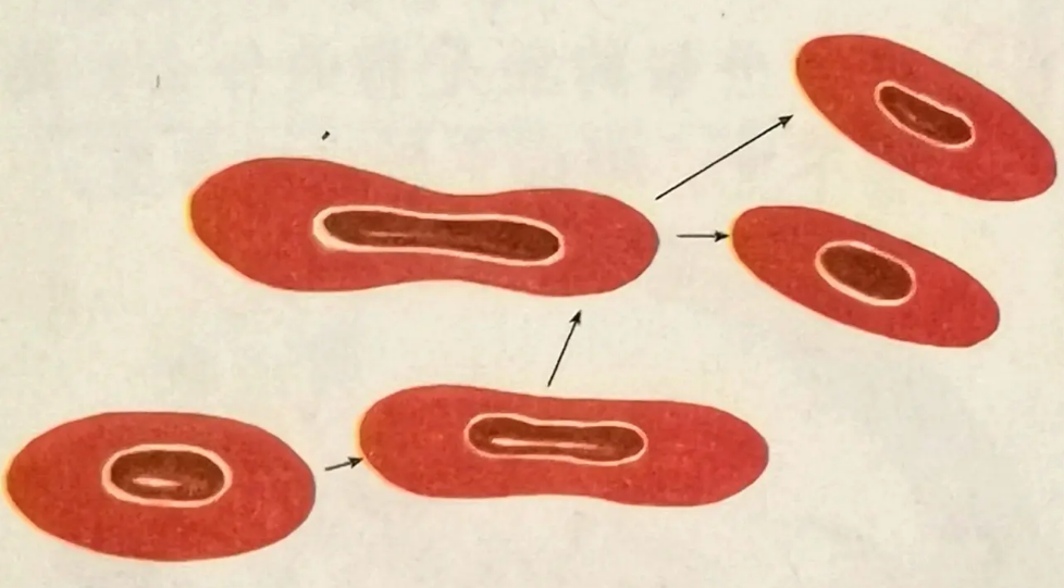 其次就是細(xì)胞無絲分裂。細(xì)胞無絲分裂的過程比較簡單,一般是細(xì)胞核先延長,從核的中部向內(nèi)凹進(jìn),縊裂成為兩個細(xì)胞核;接著,整個細(xì)胞從中部縊裂成兩部分,形成兩個子細(xì)胞。因?yàn)榉至堰^程中沒有出現(xiàn)紡錘絲和染色體,所以叫做無絲分裂。