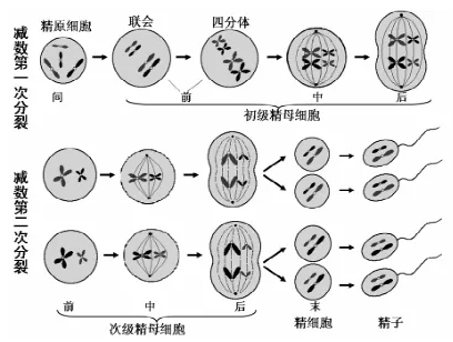 最后就是減數(shù)分裂。減數(shù)分裂是一種特殊方式的有絲分裂,它與有性生殖細(xì)胞的形成有關(guān)。它是進(jìn)行有性生殖的生物,在原始的生殖細(xì)胞發(fā)展為成熟的生殖細(xì)胞(精子或卵細(xì)胞)的過程中,要經(jīng)過減數(shù)分裂。在整個減數(shù)分裂過程中,染色體只復(fù)制一次,而細(xì)胞連續(xù)分裂兩次。減數(shù)分裂的結(jié)果是,新產(chǎn)生的生殖細(xì)胞中的染色體數(shù)目,比新原始的生殖細(xì)胞的減少一半。例如,人的精原細(xì)胞和卵原細(xì)胞中各有46條染色體,而經(jīng)過減數(shù)分裂形成的精子和卵細(xì)胞中,只含有23條染色體。