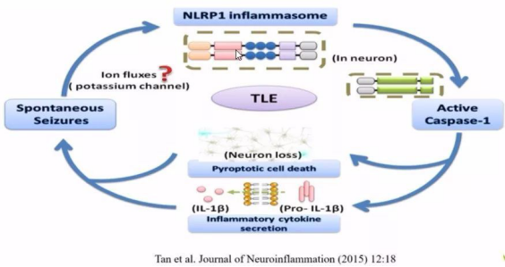 神經(jīng)系統(tǒng)疾病包括腦損傷,癲癇等。以癲癇為例,研究發(fā)現(xiàn),癲癇發(fā)作可通過鉀離子外流等途徑激活NLRP1炎癥體,進而激活依賴Caspase-1的焦亡途徑,導(dǎo)致癲癇進一步發(fā)展。
