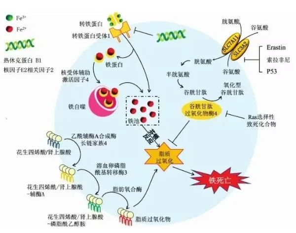 而鐵死亡則是由脂質過氧化和鐵離子積累引起的調(diào)節(jié)性細胞壞死,其核心機制在于細胞內(nèi)脂質氧化物的代謝障礙。