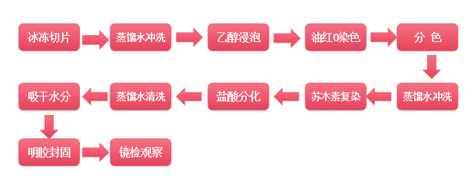 油紅O脂肪染色法是指在日常病理診斷和科研工作中為了顯示組織內的脂肪常采用油紅O進行染色的方法,油紅O為脂溶性染料,在脂肪內能高度溶解,可特異性的使組織內甘油三酯等中性脂肪著色。